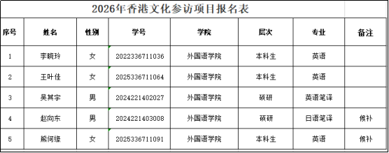 根据学校国际处相关通知及规定,我院结合综合测评、绩点排名等情况,拟定本次香港文化参访项目推荐学生名单。现予以公示,公示时间为4月9日-4月10日。