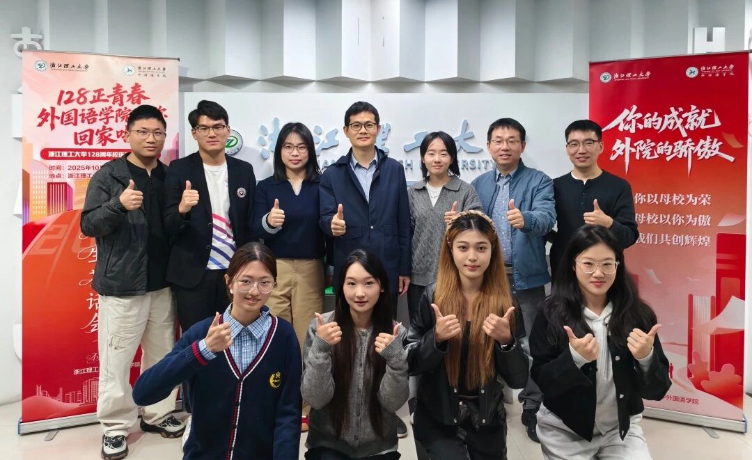 10月25日上午,浙江理工大学外国语学院“师生茶话会,共叙外院情”校友返校日交流活动顺利举行。学院党委副书记李卫敏老师,辅导员郑宇徽老师,多位优秀校友代表及在校生齐聚一堂,围绕学业发展、职业规划、考研考公等话题展开深入交流,现场气氛温馨而热烈。活动由学院校友办主任李柯老师主持。