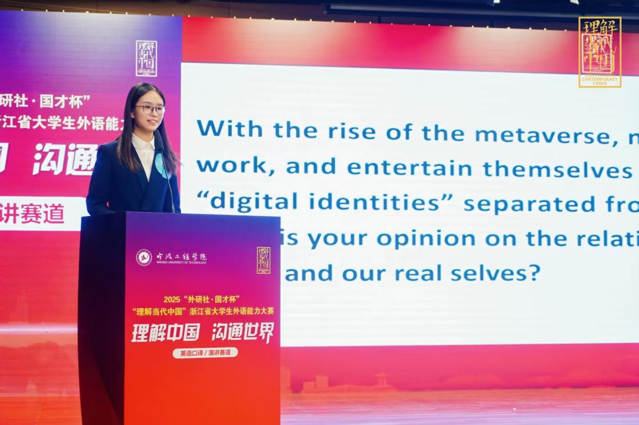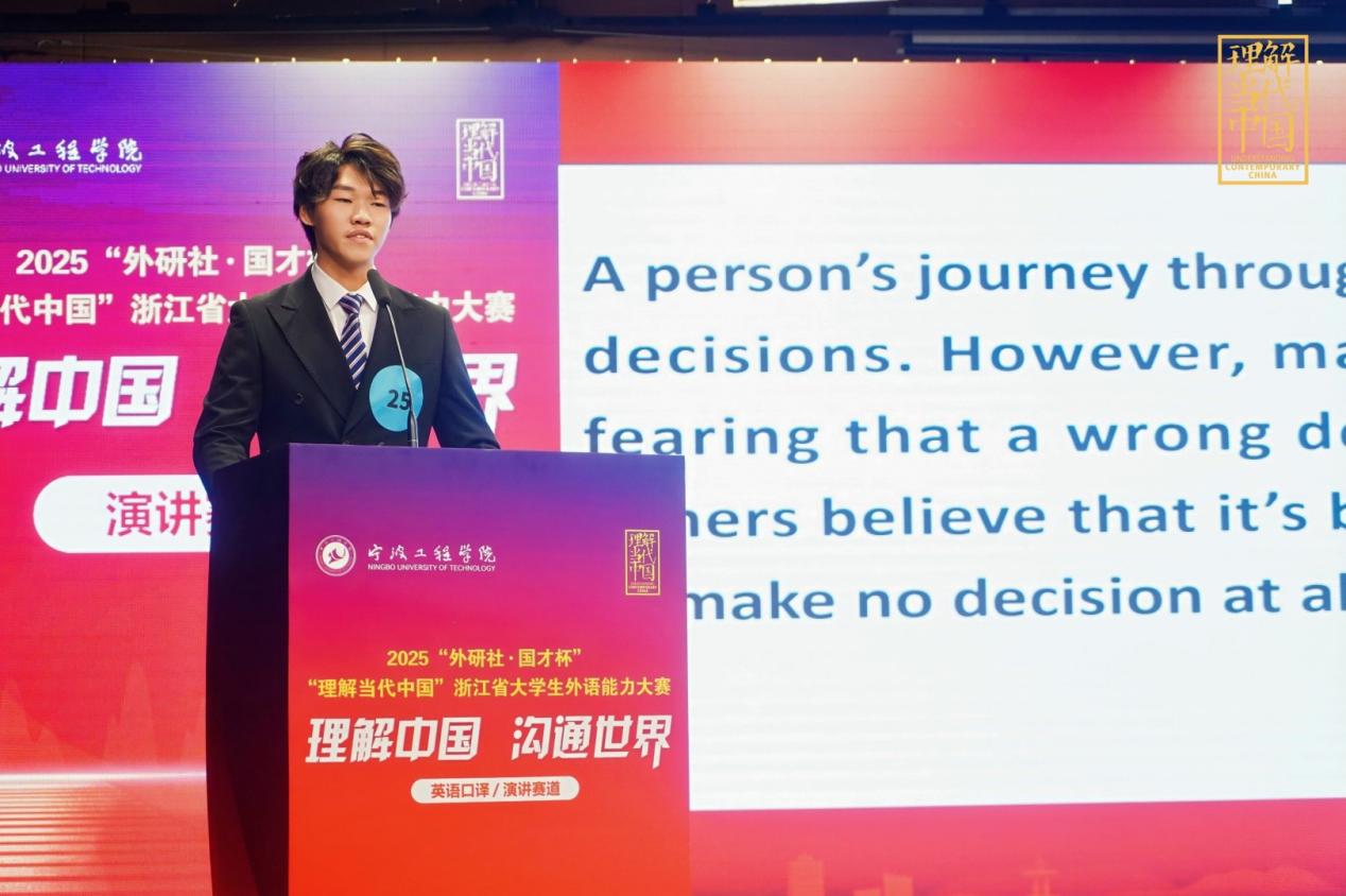 2025年11月1日至2日,“外研社·国才杯”“理解当代中国”全国大学生外语能力大赛英语演讲赛项浙江省省赛在宁波工程学院举行。本届大赛以“Strike the Waves”(击水中流)为主题,激励青年勇立潮头、破浪前行,吸引了来自全省本科高校的178名选手参与角逐。浙江理工大学选派4名选手参赛,最终荣获银奖3项、铜奖1项,3名银奖选手全部成功晋级国赛。