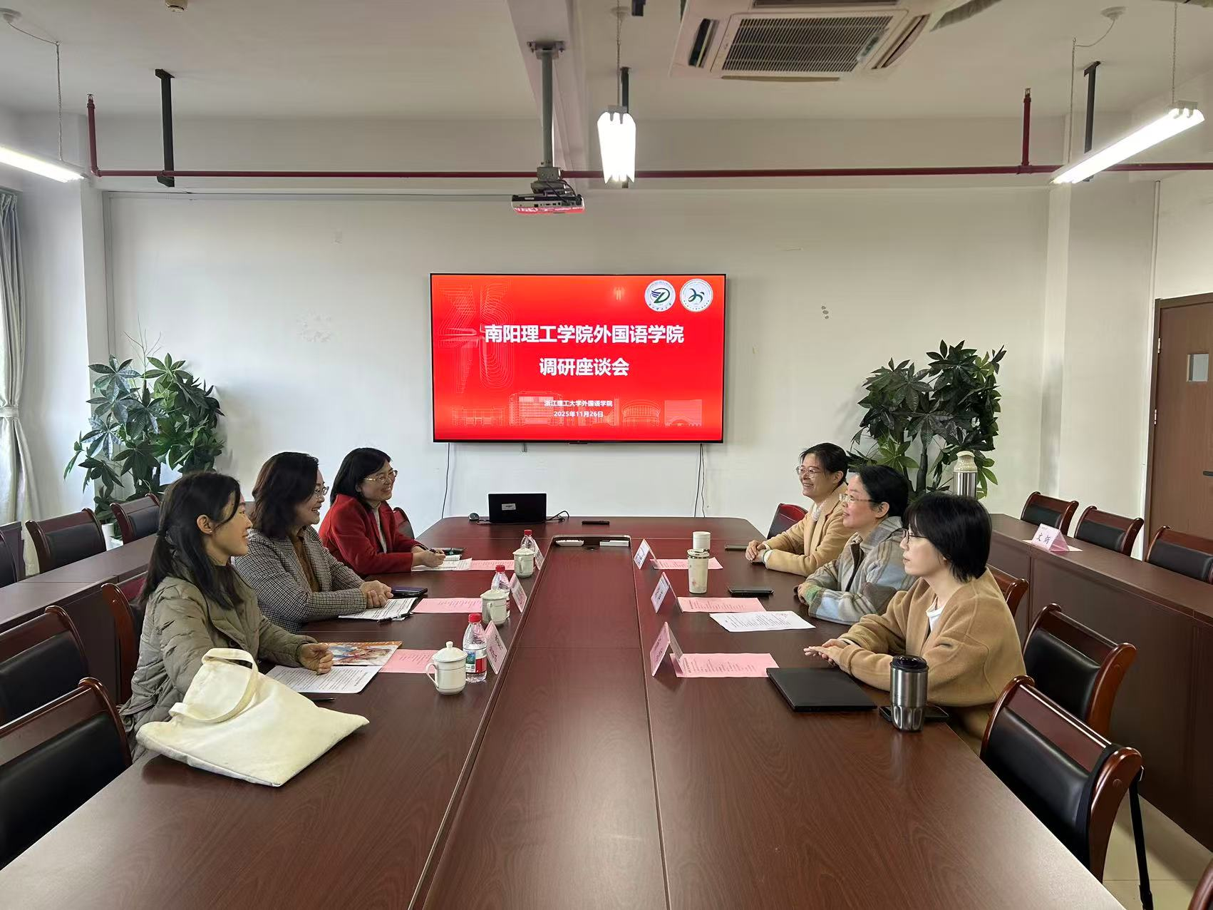 2025年11月26日,南阳理工学院外国语学院副院长包相玲一行来我院开展调研交流。我院副院长饶萍、英语系副主任徐莹、日语系主任杨琼接待来访团队。座谈会在学院612会议室举行。