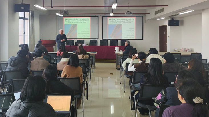 12月3日,浙江大学外国语学院庞继贤教授来我院为老师们作了一场专题讲座,题为“破解迈向教育成功的语言密钥:漫谈学术英语”,学院副院长王昌米主持了本场讲座。