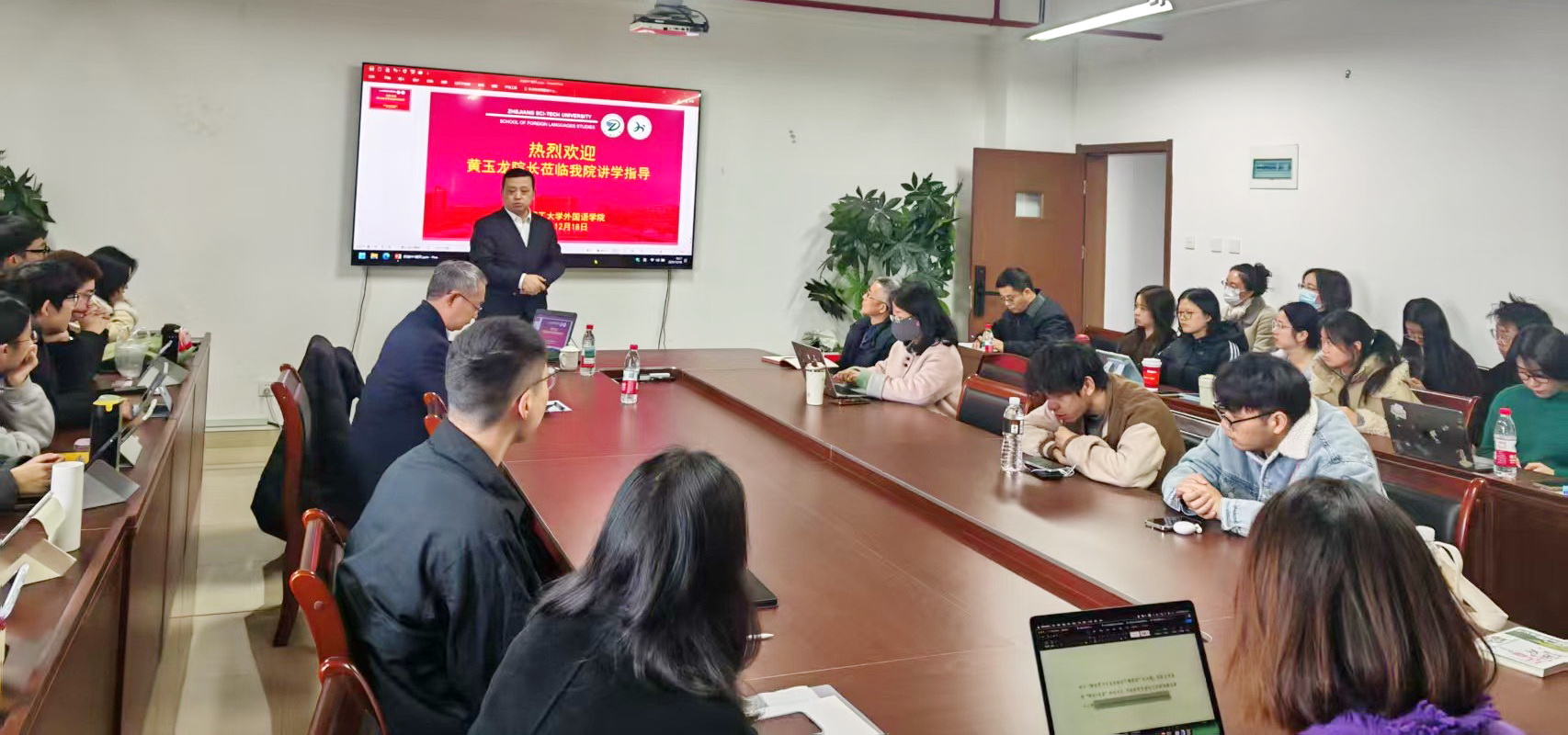 2025年12月18日上午,中国翻译协会副会长、中国外文局翻译院院长黄玉龙应邀莅临我校外国语学院,为全院师生作专题学术报告。